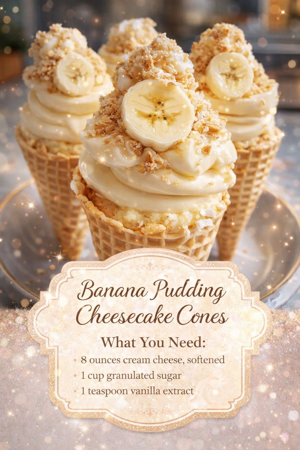 This banana pudding cheesecake cones recipe is a wonderful and creative way to enjoy two of the most popular desserts in the world in a single portable snack. This dish is all about taking the creamy and comforting flavor of southern style banana pudding and mixing it with the rich and velvety texture of a classic cheesecake. Instead of serving this treat in a boring glass bowl or a heavy ceramic dish we are using crispy waffle cones to hold the sweet filling which adds a fun and crunchy element to every single bite. The filling is made with fresh bananas and smooth cream cheese and sweet pudding mix to create a flavor that is both nostalgic and sophisticated at the very same time. You do not need to be a professional baker or have a lot of expensive kitchen gadgets to make these cones look like they came from a high end dessert shop. This recipe focuses on simple assembly and easy mixing techniques that any beginner can master in just a few minutes of work. By using fresh fruit and a few pantry staples you can transform a regular afternoon into a celebration of sweet and creamy flavors that will make your taste buds dance with joy. It is the kind of recipe that makes everyone in the room stop and look because it is so beautiful and unique in its presentation.