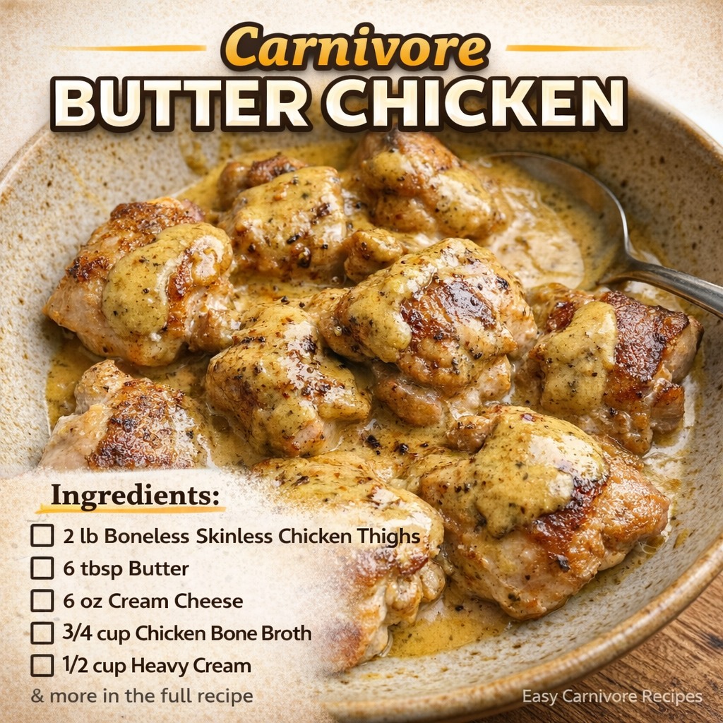 This carnivore butter chicken rich recipe is a total game changer for anyone who wants to enjoy the famous flavors of Indian cooking while staying strictly within a meat based way of eating. Traditional butter chicken usually relies on a lot of tomatoes and onions and various plant based spices to create its signature taste but this version strips all of that away to focus on pure animal nutrition. By using high quality fats like grass fed butter and heavy cream along with tender chicken thighs you can recreate that silky and decadent sauce that everyone loves without any of the plants that might cause inflammation. This recipe is all about the art of reduction and using the natural savory notes of the meat and dairy to build a deep and satisfying profile that feels like a real treat. You will be amazed at how a few simple animal products can transform into a golden and creamy masterpiece that looks just like the dish you would order at a fancy restaurant. It is a perfect example of how the carnivore diet can be diverse and exciting while still following the core rules of eating only from the animal kingdom. Even if you are a beginner in the kitchen this recipe is very easy to master because it focuses on slow cooking and simple mixing techniques that yield perfect results every single time.