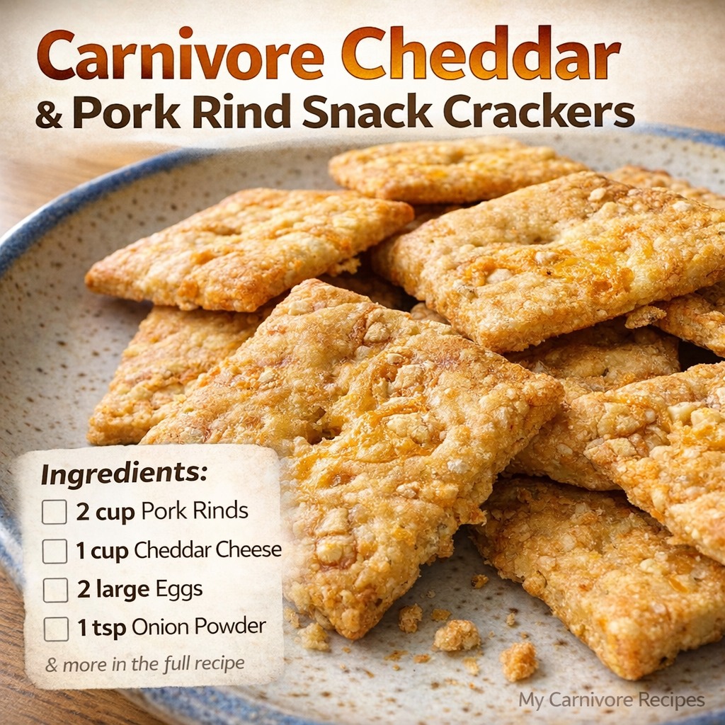 Finding a snack that fits perfectly into a strict carnivore lifestyle can sometimes feel like a very difficult challenge because most store bought crackers are filled with flour and sugar and seed oils. This recipe for carnivore cheddar and pork rind snack crackers is a total game changer for anyone who misses that satisfying crunch but wants to stick to animal based ingredients. By using only high quality proteins and healthy fats you can create a crispy treat that satisfies your cravings without causing a blood sugar spike or making you feel bloated. Most people do not realize that you can turn simple crushed pork rinds and melted cheese into a firm and crunchy cracker that holds its shape perfectly for dipping or eating on its own. This article will show you exactly how to combine these powerful ingredients to make a snack that feels like a cheat meal but is actually packed with nutrition. You will learn the secret to getting that perfect golden brown color and the ideal snap that every great cracker should have in every single bite. This guide is written for beginners who want a simple way to stay on track with their health goals while still enjoying the fun of eating a crunchy snack during a movie or a football game. Once you master this basic method you will never look back at those processed boxes in the cracker aisle again because your homemade version will taste so much fresher and more savory.