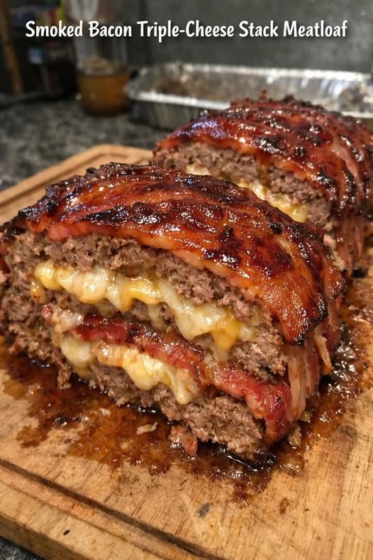 Smoked Bacon Triple Cheese Stack Meatloaf